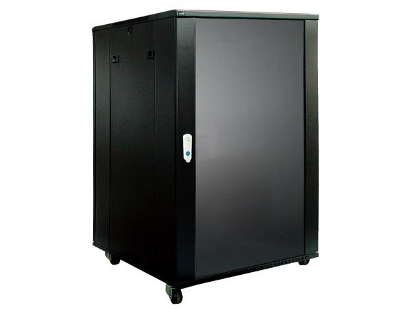 samostojeći 19-inch komunikacijski ormar za smještaj 18U jedinica, dimenzije 600x600mm, sukladan standardima : ANSI/EIA RS-310D, DIN41491 i IEC60297, u kompletu sa prednjim i stražnjim vratima na ključić te kotačićima i nogarama za izravnavanje