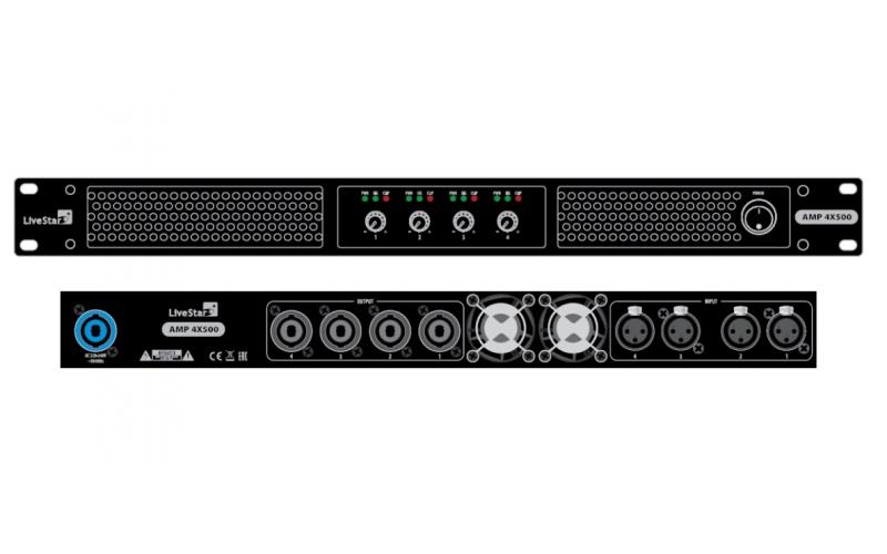 Pojačalo od 4x500W. Potpuno neovisna pojačala ugrađena u jedno kućište. Regulacija gain-a za svaki od ulaza pojedinačno.