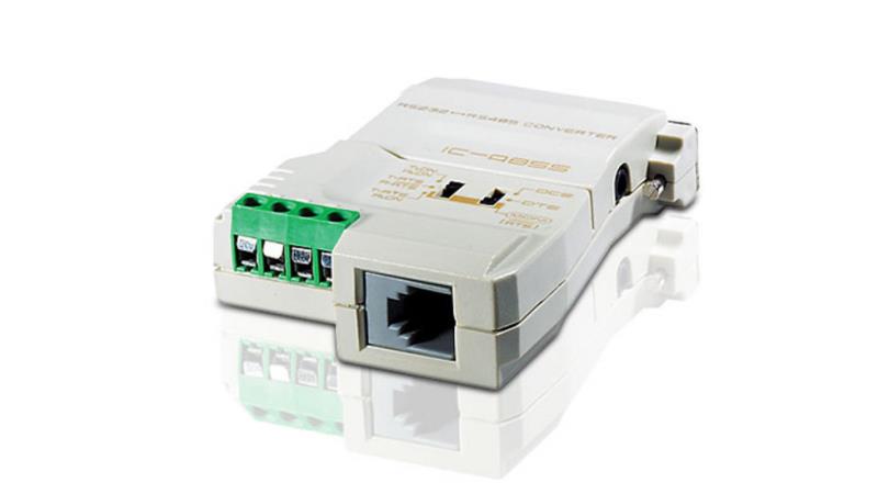 IC485S is a 2-way converter for converting RS-232 signals to and from RS-422/RS-485 signals in long-distance applications up to 1200 m (4000 ft.). It supports the connection of up to 32 hubs and features monitoring to confirm the data passing between devices.