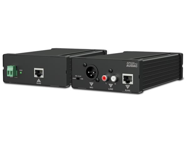 APG20MK2 je pristupnik audio prijamnika koji pretvara audio signale prenesene sabirnicom podataka u standardne linijske i mikrofonske signale. Audio izlaz APG20 može se napajati na redovite ulaze na audio pojačalima, pretpojačalima, mikserima ili mnogim drugim. U kombinaciji s odgovarajućim ulaznim modulima (WLI i WMI) nudi rješenje za dvokanalni prijenos zvuka (linija i mikrofon) koji pokriva udaljenosti do 300 metara preko standardnog UTP CAT5E (ili boljeg) kabela. Udaljenosti do 600 metara mogu se postići primjenom dodatnih napajanja. Zbog diferencijalnog ulaza sabirnice s povećanim razinama napona, primljeni signali nisu osjetljivi na buku, smetnje i slabljenje na velikoj udaljenosti prijenosa. Ovo nudi odgovarajuće rješenje za visokokvalitetni prijenos zvuka u aplikacijama na velike udaljenosti, a istovremeno zadržava visokokvalitetnu reprodukciju zvuka. Ulaz sabirnice koji nosi oba audio kanala, RS-485 podatkovni kanal i distribuciju od 24 Volta na kraj odašiljača implementiran je pomoću RJ45 konektora. Audio izlazi se izvode pomoću dvostrukih RCA (linijskih) i ženskih XLR (mikrofonskih) veza. Izlaz XLR popraćen je prekidačem koji omogućuje odabir između izlazne razine -40 dB i 0 dB. Signali koji se prenose na RS-485 paru sabirnice podataka povezani su s RJ45 izlaznom vezom, omogućujući lančano povezivanje na kontroliranu opremu. Razne opcionalno dostupne montažne konzole za asortiman proizvoda AUDAC S-Box omogućuju ugradnju stola, ormara ili 19 ”stalka za opremu.