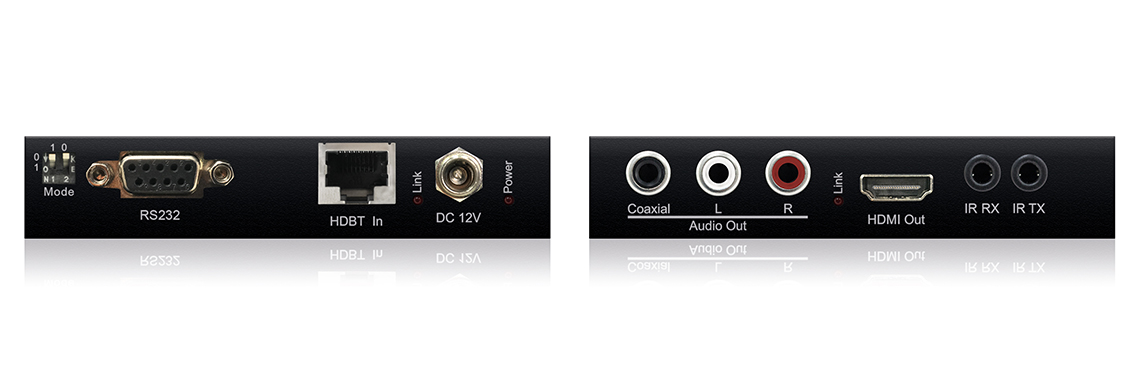 HDBaseT prijamnik za prijenos HDMI, IR i RS232 signala putem mreže, podržava CAT5/CAT6, udaljenost do 100m (4K60Hz 4:4:4 do 70m), dvosmjerni IR & RS-232, EDID postavke, Audio break-out izlaz na prijemniku, dvosmjerni PoH (PoE), HDCP2.2