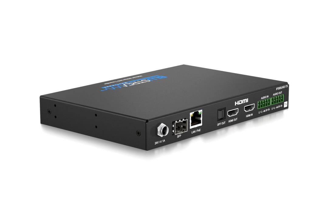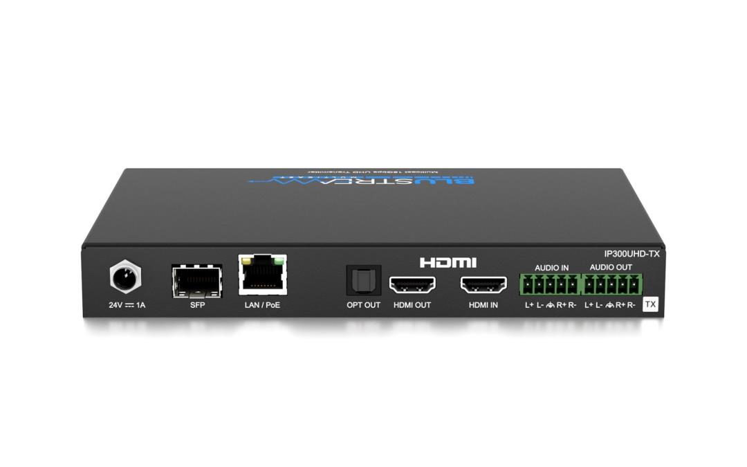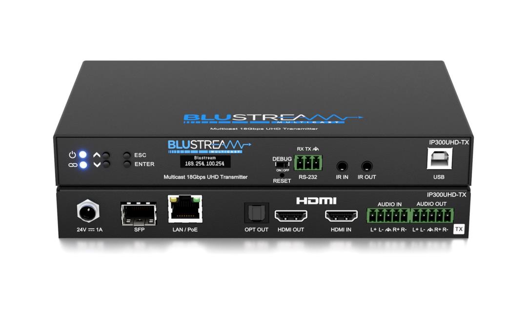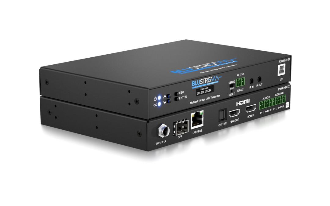 Uz potpunu interoperabilnost s linijom proizvoda IP350UHD gdje je potreban Dante, IP300UHD-TX je vodeći 4K HDCP 2.2 HDMI odašiljač u industriji koji, koristeći tehnologiju vizualne kompresije bez gubitaka, isporučuje 18 Gbps HDMI, audio, dvosmjerni IR, RS-232 i USB /KVM do duljine od 100 m preko standardne bakrene mrežne arhitekture ili veće udaljenosti korištenjem ugrađenog optičkog SFP mrežnog sučelja.