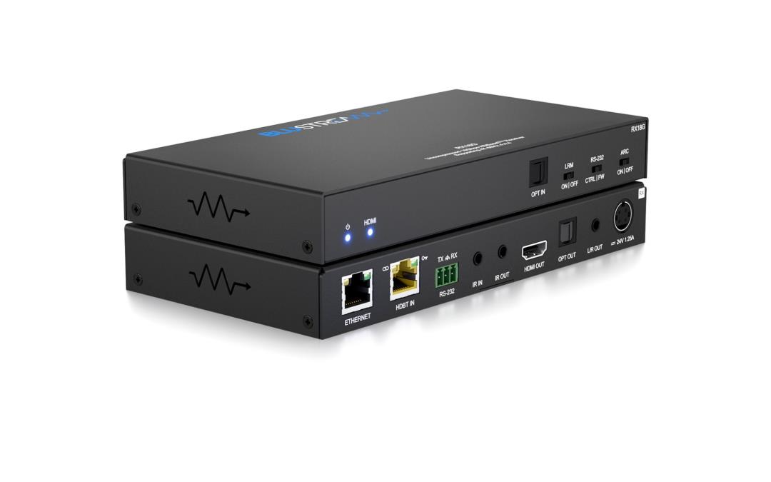 RX18G podržava dvosmjerni IR, RS-232 i PoC do duljine od 100 m preko jednog CAT6A kabela, dok također pruža poboljšane značajke uključujući ARC putem HDMI-ja ili optički (S/PDIF) i 1Gb Ethernet prolaz.