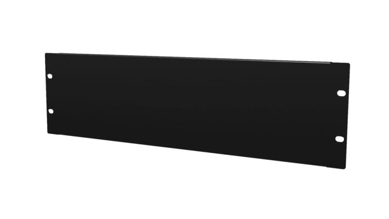 An elegant 19'' blind plate made of steel with a plate thickness of 1.5 mm and provided with a black (RAL9004) structured powder coating. The blind plate is used to fill in gaps between equipment.