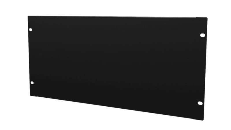 An elegant 19'' blind plate made of steel with a plate thickness of 1.5 mm and provided with a black (RAL9004) structured powder coating. The blind plate is used to fill in gaps between equipment.