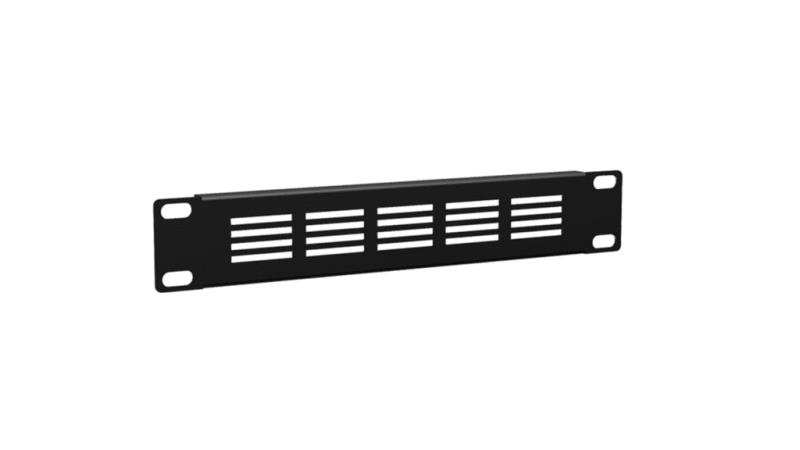 A blind panel made of steel with a plate thickness of 1.5 mm and finished with a black (RAL 9004) structured powder coating, carefully designed for 10.5" cabinets. The panel is perforated with ventilation holes to help cool all stored equipment.