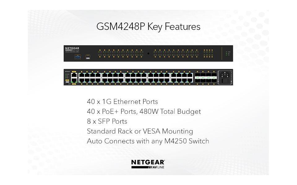 Built-in IT web GUI, console, telnet and SSH consistent with other NETGEAR M4xxx series.
