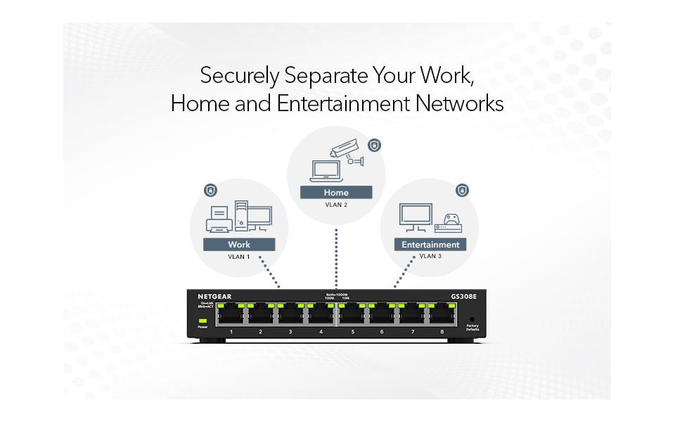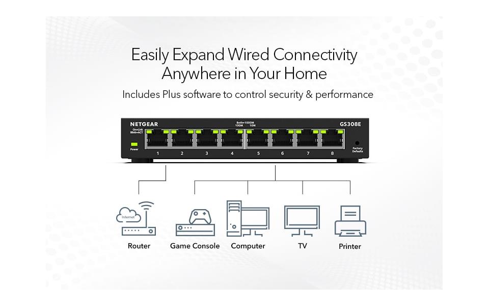 8 ports provide gigabit Ethernet connectivity to your devices.