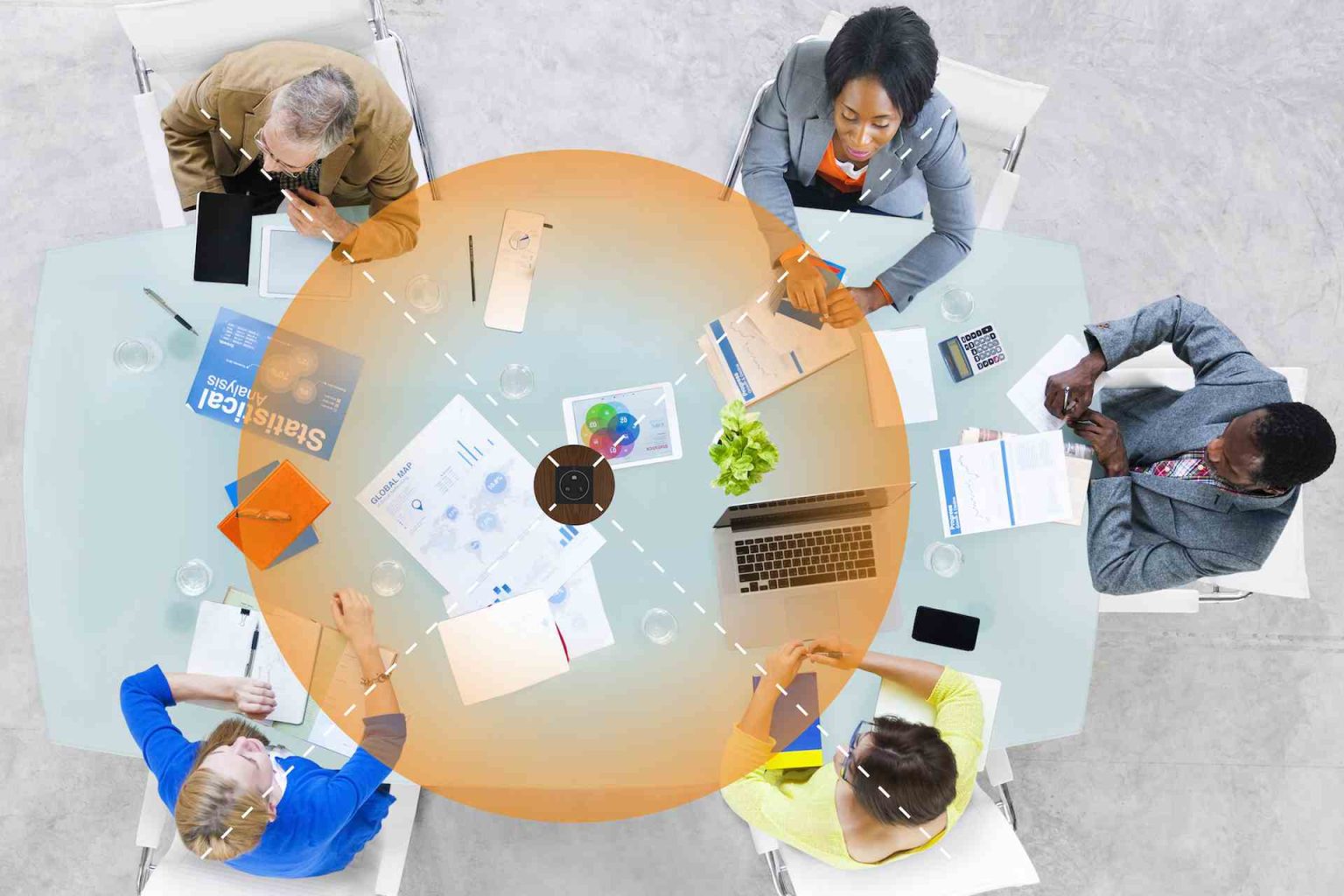 Suprotno tradicionalnim web kamerama, Innex Cube postavlja se na središte stola kako bi svi sudionici što prirodnije sjedili okrenuti licem prema kameri.