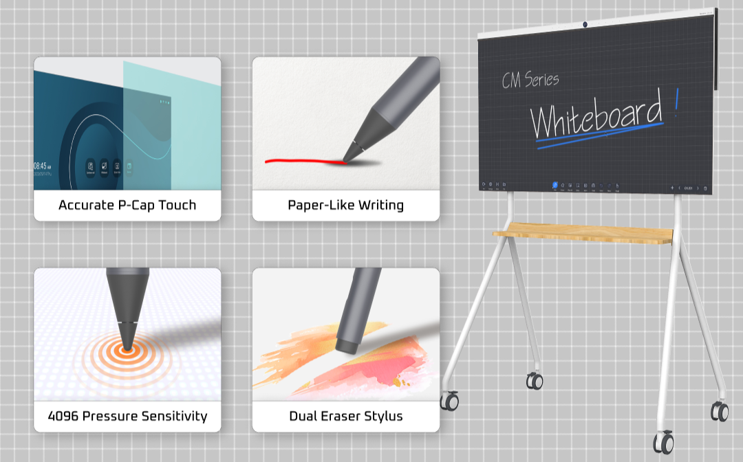 Softver za digitalnu ploču (whiteboard) CM serije poboljšava suradnju kroz intuitivan, interaktivan radni prostor. Korisnici mogu bilježiti i snimati snimke zaslona izravno sa svojih laptopa tijekom dijeljenja zaslona, integrirajući ih besprijekorno u digitalnu ploču za dinamičnije dijeljenje ideja.
