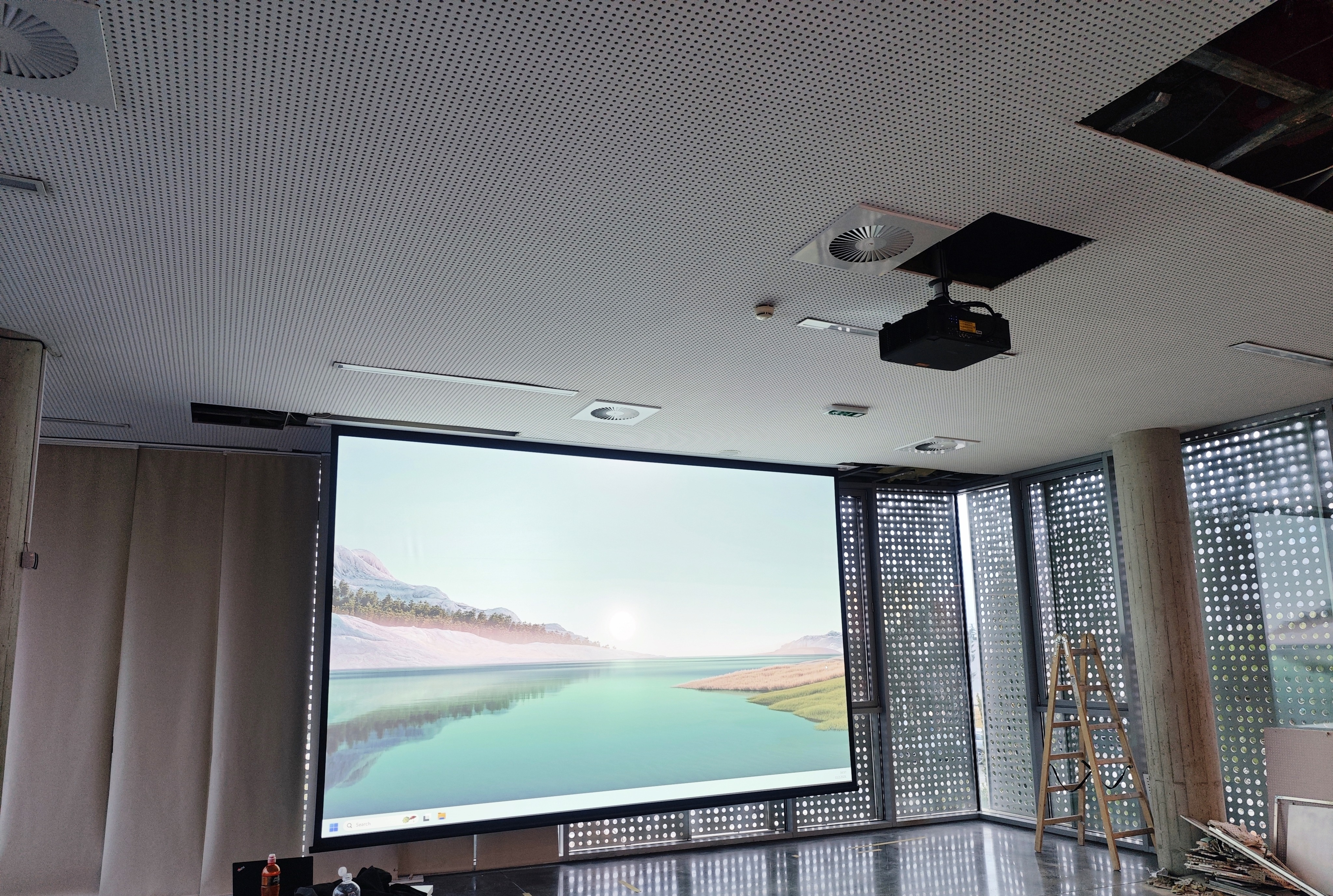 Cilj projekta bio je osigurati vrhunsku kvalitetu slike za potrebe predavanja, konferencija i prezentacija, uz pouzdanu i diskretnu integraciju u postojeći interijer.  Naša tvrtka preuzela je zadatak instalacije projektora i velikog motoriziranog projekcijskog platna u višenamjenskoj dvorani. Implementirali smo cjelovito rješenje koje uključuje instalacijski projektor, motorizirano stropno platno i HDBaseT distribuciju signala, pružajući visoku razinu fleksibilnosti i jednostavnost upravljanja.