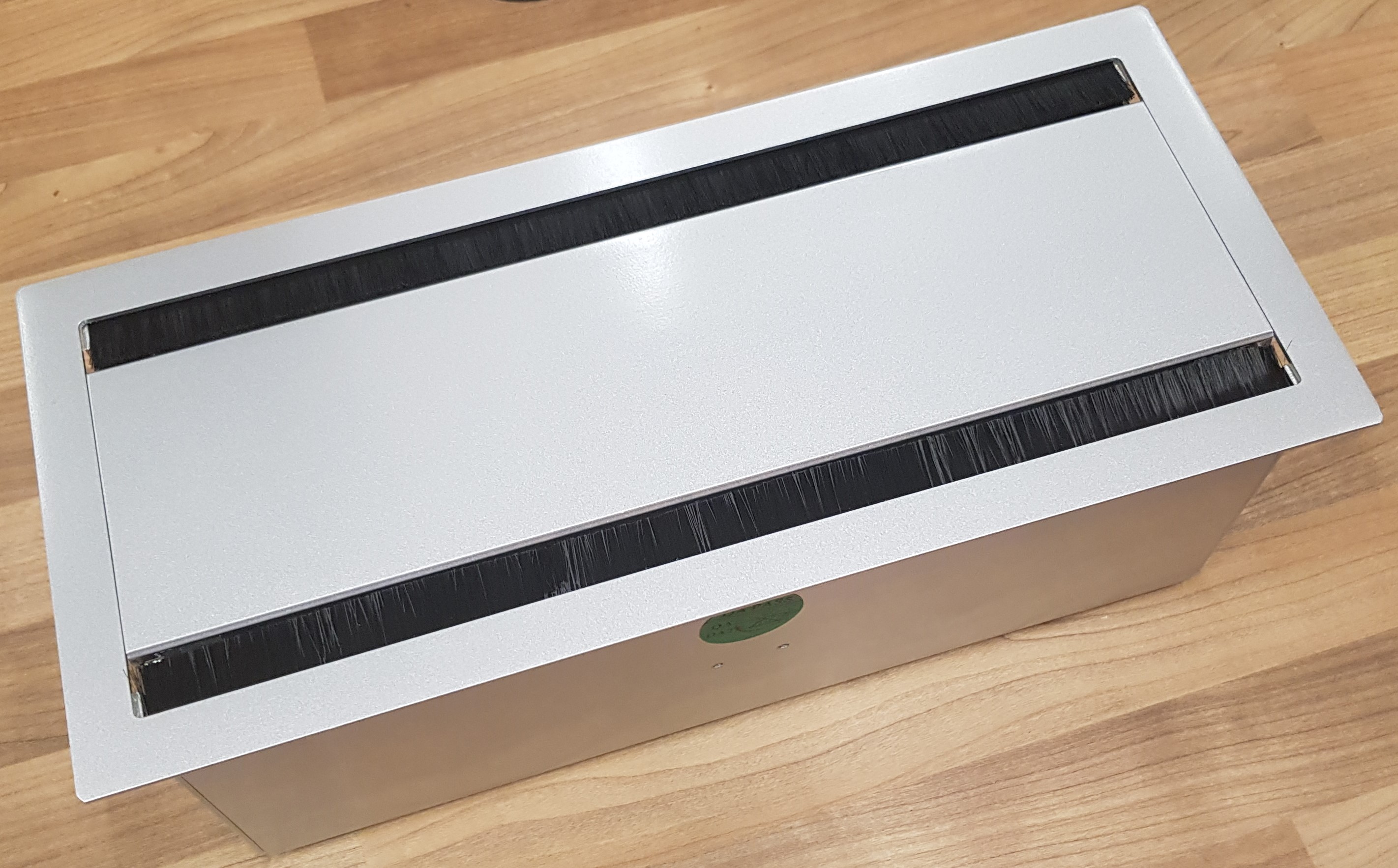 stolna horizontalna kutija za smještaj 8 AVcon panela, sa kliznim poklopcem na otvaranje na obje strane, srebrni čelik