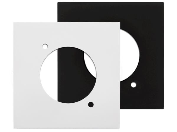Connection plate with a standard D-size hole, designed to fit any type or brand of D-size connector. Compatible with AUDAC, Niko or other 45 x 45 installation materials. (mounting frame and cover plate not included)