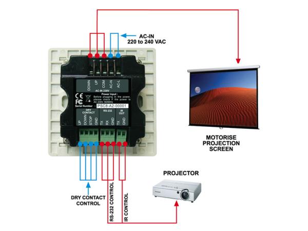 Programabilno tipkalo 3 tipke 1x RS232/RS485 ulaz/izlaz, 1x Power Relay 1x IR. Samostalno može kontrolirati jedan RS232 uređaj.