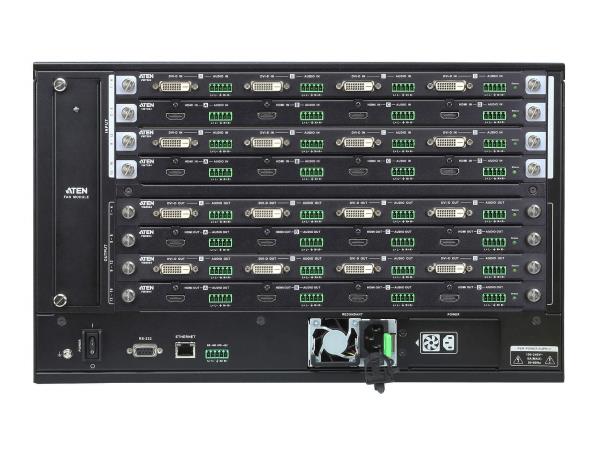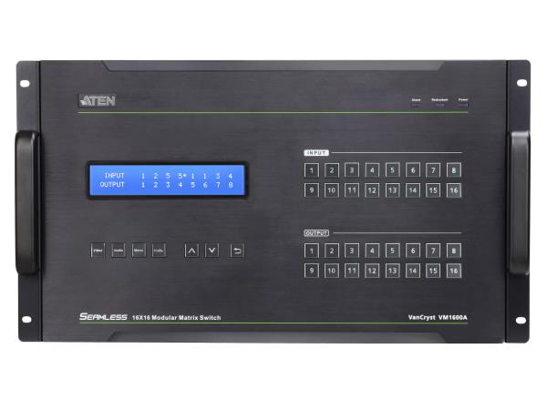 Connects any of 16 video sources to any of 16 displays in combination with ATEN Modular Matrix I/O Boards