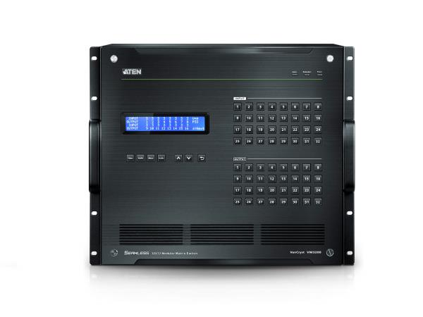 Modularni matrični preklopnik VM3200 omogućava korisnicima neovisno prebacivanje i usmjeravanje video i / ili audio sadržaje izravno na razne monitore, zaslone, projektore i / ili zvučnike jednostavnim pritiskom tipke na prednjoj ploči. Ugrađeni scaler kodira video format kako bi se osiguralo prebacivanje u stvarnom vremenu. LCD zaslon na prednjoj ploči prikazuje brzi prikaz aktivnih priključaka. Prekidač također uključuje opciju za odabir EDID načina koji daje najbolju razlučivost na raznim monitorima. VM3200 je lako proširiv i nudi liniju ATEN-ovih I/O ploča koje se mogu brzo zamjenjivati. Opremljen s automatskom pretvorbom signala, omogućava različite kombinacije digitalnih video sučelja, uključujući HDBaseT, DisplayPort, HDMI, DVI, 3G-SDI i VGA.