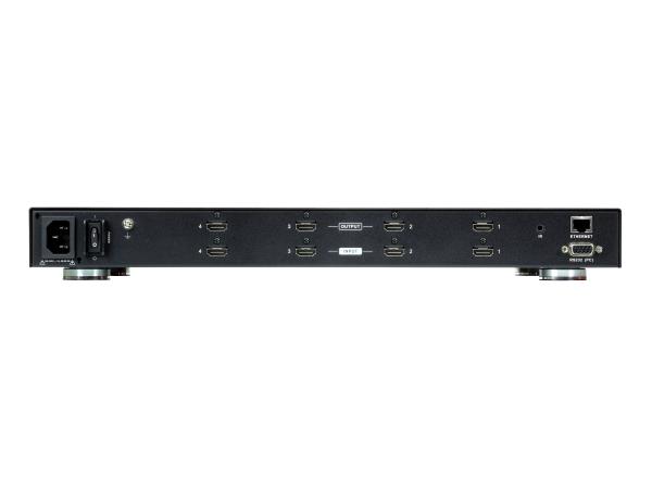 4K HDMI 2.2, matrični HDMI preklopnik bez zadrške (seamless switch), ugrađen scaler i funkcija video zida, audio breakout, kontrola glasnoće pojedinog HDMI izlaza, Ulazi: 4x HDMI 2.2, Izlazi: 4x HDMI 2.2, 1x Audio, Propusnost: 10.2 Gbps (3.40 Gbps po liniji), Kontrola putem RS232/IR/WEB-GUI, Tezina: 7 Kg