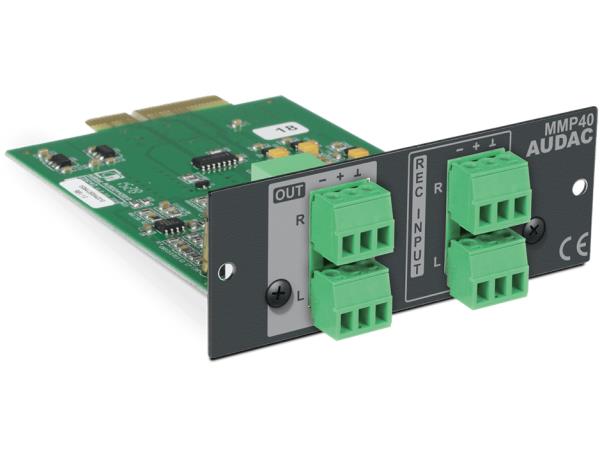 Media player i snimač Audac MMP 40, profesionalni media player sa jedinstvenom SourceCon modularnom tehnologijom koja omogućuje plug & play implementaciju na bilo koji kompatibilni uređaj. Podržava reprodukciju sa USB diska, reprodukciju audio formata : MP3, OGG, AAC, FLAC, WMA i WAV, te snimanje u slijedećim audio formatima MP3, OGG i WAV. Posjeduje balansirani stereo linijski izlaz (za reprodukciju), te balansirani stereo linijski ulaz (za snimanje).