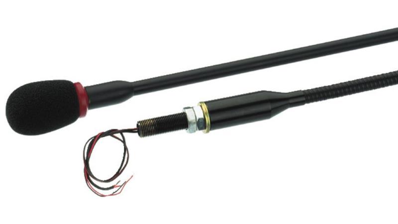 Gooseneck mikrofon sa crvenim svijetlosnim prstenom. Ovaj mikrofon ima izvrsnu usmjerenost i jasnu reprodukciju glasa. Pogodan za razglasne sisteme.