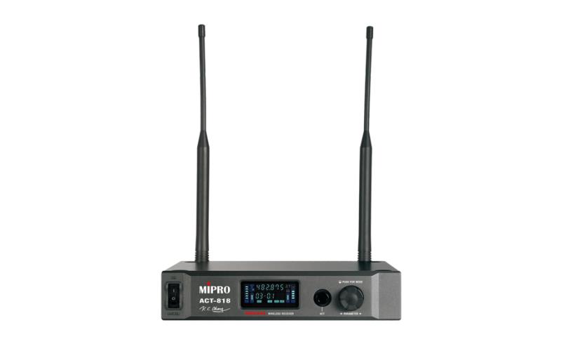 Mipro ACT-818 je vrhunski digitalni profesionalni prijemnik kompatibilan sa ACT-8 bežićnim mikrofonima. Kvaliteta audio signala je ravna žićnoj vezi, 24-bit/44.1kHz Rate. Dizajniran je i za ugradnju u komunikacijski ormarić prema EIA standardu veličine 1U.