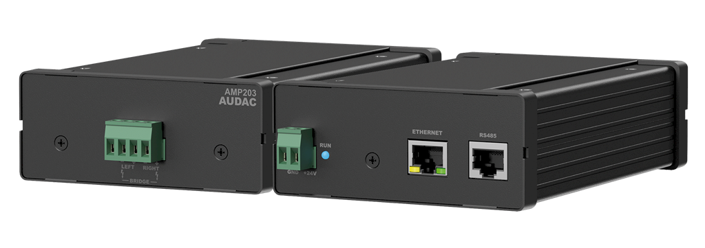 AMP203 je revolucionarno mini stereo pojačalo, koje sadrži mrežni ulaz putem Dante ™ ili AES67, pružajući cjelovito rješenje za mrežno umrežavanje za distribuciju nekomprimiranog zvuka putem standardnih Ethernet mreža s gotovo nultom zakašnjenjem, istovremeno omogućujući povezivanje svih ostalih podataka na istu mrežu.