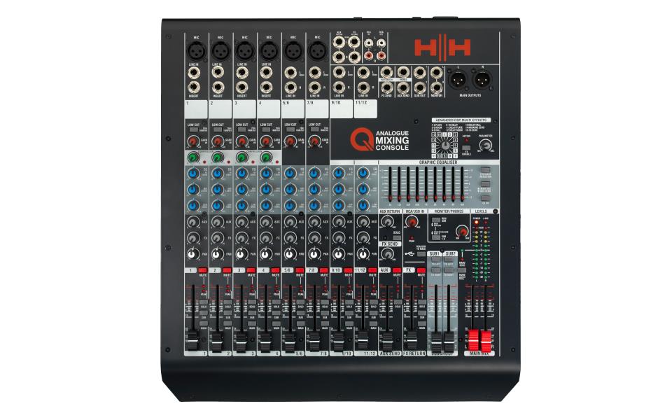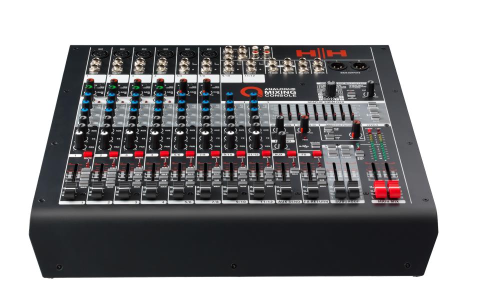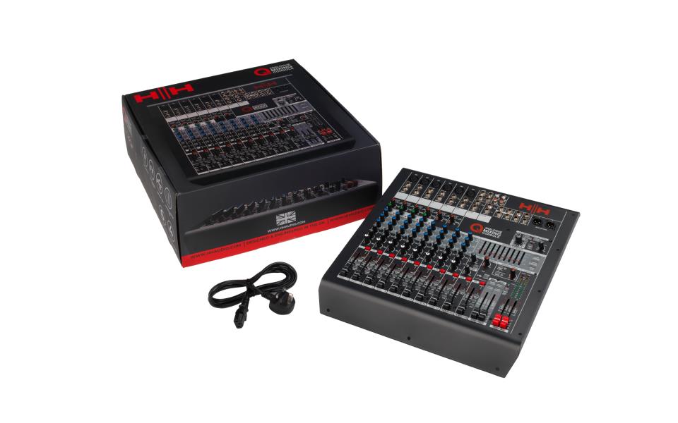Q12FX je 12-kanalna analogna miks konzola dizajnirana i izrađena u Velikoj Britaniji. Q12FX se sastoji od 12 ulaznih kanala: 6 mono kanala s mikrofonskim ulazima koji koriste tiha mikrofonska pretpojačala plus opciju line-in na svakom kanalu uz 4 stereo linijska ulazna kanala savršena za električne klavire, sintisajzere, bubnjarske strojeve, audio s vanjskih media playera ili bilo koje druge izvore linijske razine.