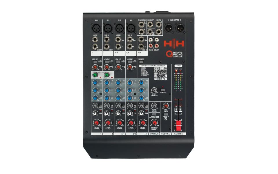 Q8FX je 8-kanalna analogna miks konzola dizajnirana i izrađena u Velikoj Britaniji. Q8FX sadrži 4 mikrofonska ulaza koji koriste mikrofonska pretpojačala s niskim šumom, kao i mogućnost aline ulaza i mono umetke na kanalima 1 i 2. Q8FX također ima 3 stereo linijska ulazna kanala savršena za električne klavire, sintisajzere, bubnjare, stereo zvuk s vanjskog medija playera ili bilo koje druge izvore na razini linije.