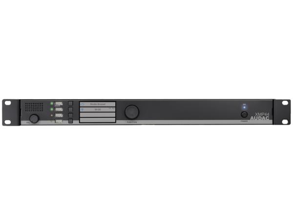 Audac XMP44, profesionalni modularni izvor zvuka sa prihvatom za do 4 modula. Povezivanje modula širokog spektra, od FM tunera do DAB/DAB+ tunera, internet radio tunera, itd. Istovremeni rad sva četiri povezana modula, predstavlja ga kao kompaktno rješenje za proširenje multi-zonskog audio sustava. USB sučelje za svaki modul pojedinačno koji omogućuje reprodukciju ili pohranu medija, te glasovnih zapisa, dok se preslušavanje odvija putem PFL zvučnika koji dolazi sa svojim regulatorom glasnoće zvuka. Zahvaljujući RS-232 konekciji, te prijenosu TCP/IP protokolom, moguća je integracija sustava s kako kućnim tako i industrijskim automatizacijskim sustavom. Dostupna je i Audac besplatna aplikacija Touch, za kontrolu sustava putem pametnih uređaja, sa bilo koje lokaciju, u bilo kojem trenutku. A opcionalno se može instalirati i Dante mrežno sučelje.