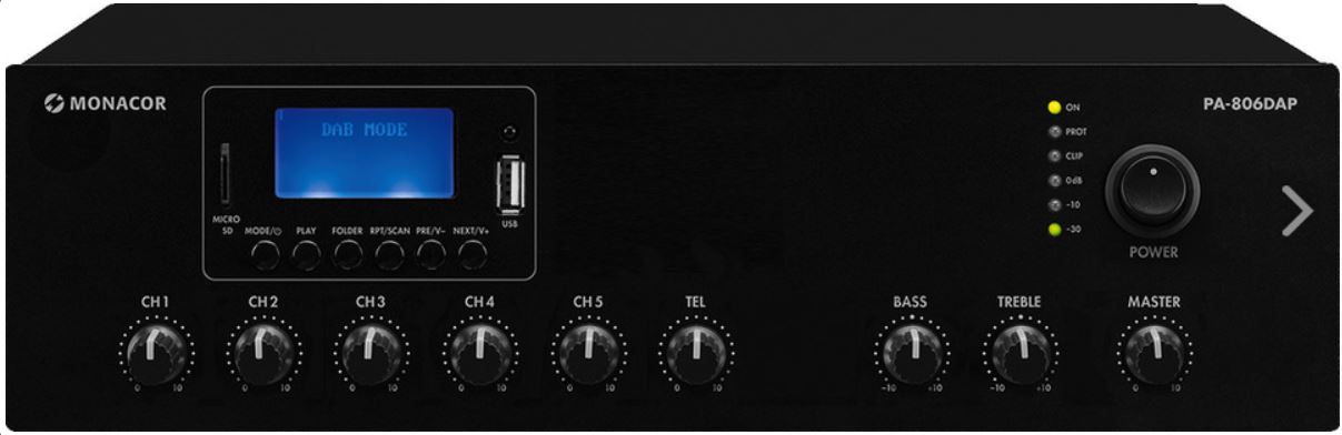 PA-812DAP [120 W]) koja su prethodno bila opremljena MP3 playerom, FM tunerom i Bluetoothom, sada nudi i DAB+ prijem bez smetnji. Prva mikserska pojačala PA-803DAP su već dostupna, uskoro se očekuju Monacor