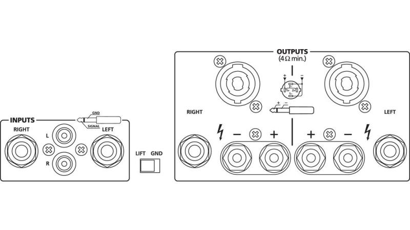 Izlazi 1 x 6.3 mm jack L/R 1 x RCA L/R 2 x SPEAKER 1 x 6.3 mm jack L/R 2 x pair of screw terminals
