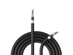 Poliuretanski vanjski omotač nudi izvrsnu otpornost na mehaničko trošenje zbog povlačenja, savijanja, pucanja i izloženosti UV zrakama, dok unutarnji omotač od PVC-a olakšava rukovanje. Dio vodiča sastoji se od 4 pojedinačno zaštićena para upredenih 24 AWG vodiča koji jamče optimalan prijenos signala, dok kombinacija individualne zaštite od aluminijske folije okružene pletenicom od pokalajne bakrene žice nudi visoku otpornost na buku i smetnje uzrokovane vanjskim uređajima.