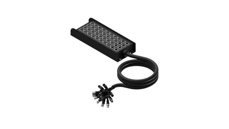 PROCAB multi stageblocks are made of solid metal. In the audio recording and entertainment fields, the stageblocks with 16 or 24 XLR connectors are common but PROCAB also offers smaller versions with 8 or 12 XLR connectors and also the one bigger version with 40 XLR connectors. Every stage block comes supplied with the necessary connectors and a fitted bag. The MSB132.8 features 32 female XLR and 8 male XLR connectors without a cable. The MSB132.8/30 has a 30 meter cable with 32 male XLR and 8 female XLR connectors.