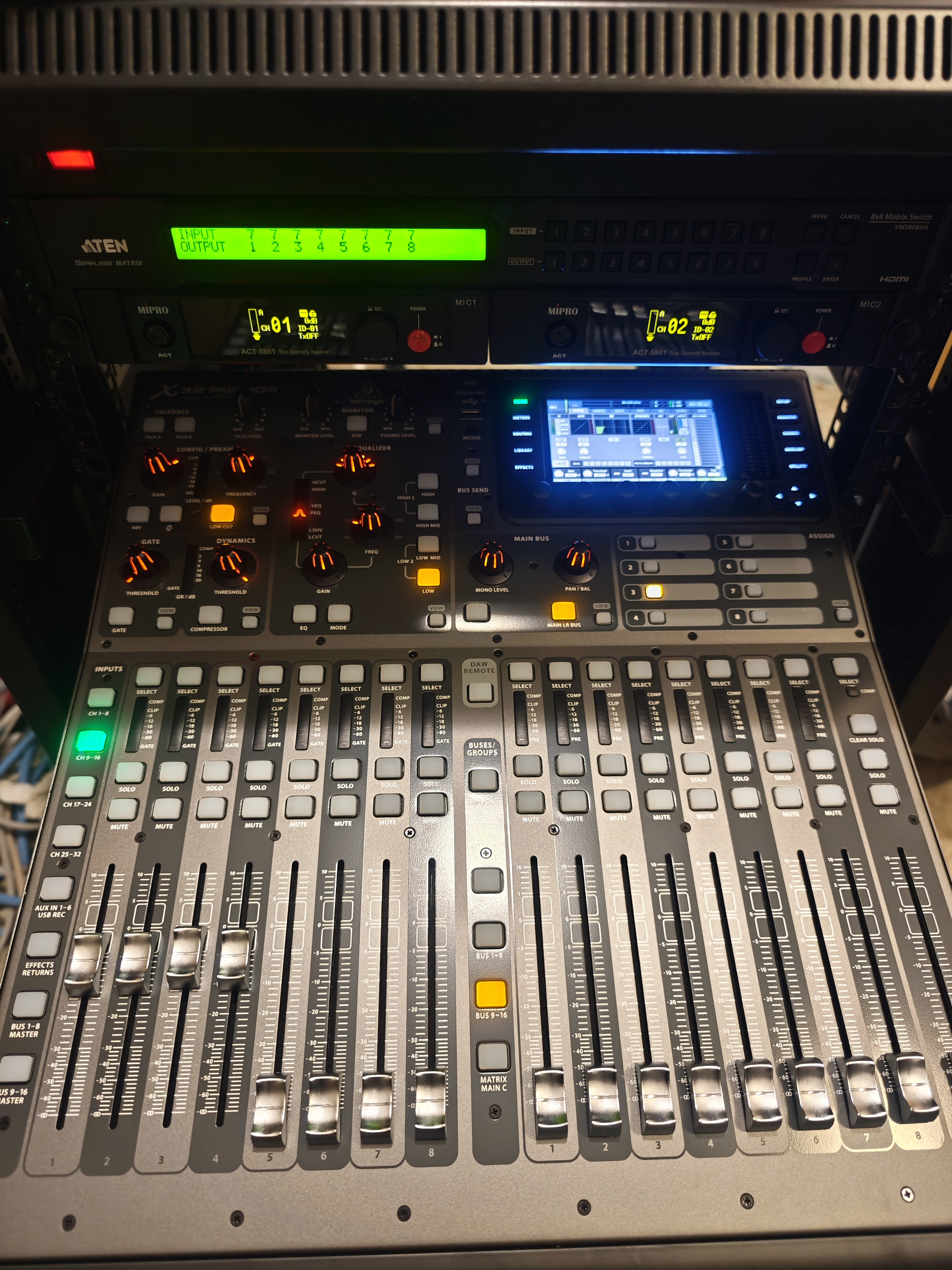 Da, sustav je jednostavan za korištenje – mikseta i video matrica se upravljaju ručno iz režijske sobe, bez potrebe za dodatnom automatizacijom.