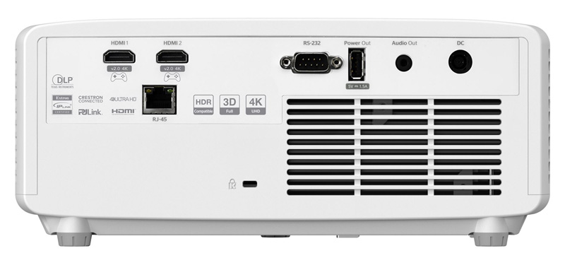Ključne značajke uključuju Duracore zabrtvljeni i otporni na prašinu (IP6X) laserski motor od 3500 ANSI lumena ocijenjen za do 30 000 sati u načinu rada Eco power, iako smo izmjerili samo 2536 lumena maksimalno na modelu ST u njegovom najsvjetlijem načinu rada. 4K DLP dizajn koristi noviji 0,65-inčni 1920x1080 DMD u odnosu na često korišteni 0,47-inčni čip, ali još uvijek s četverofaznim XPR pomicanjem piksela za postizanje rezolucije 3840x2160 na zaslonu. Projektor je kompatibilan s HDR10 i HLG sadržajem visokog dinamičkog raspona, a na vrhu je Rec.709 raspona. Izmjerili smo 95% Rec.709 u sestrinskom modelu kratkog dometa i 75% DCI-P3. Oba modela također podržavaju 1080p 3D projekcije uz dodatak DLP-Link naočala.