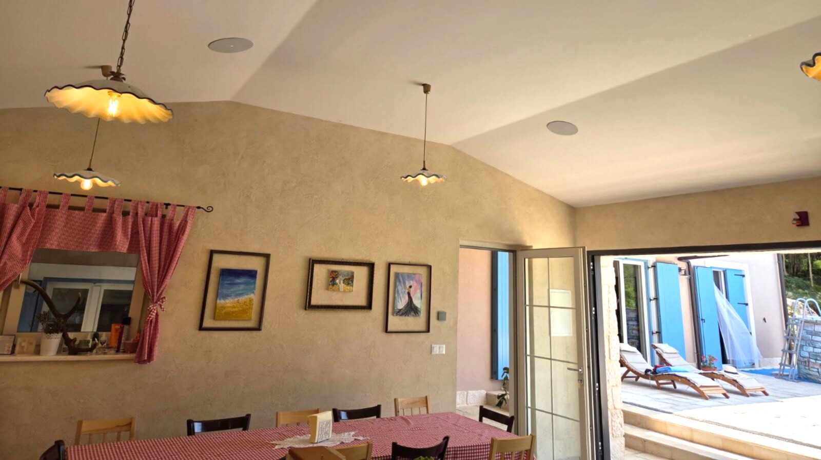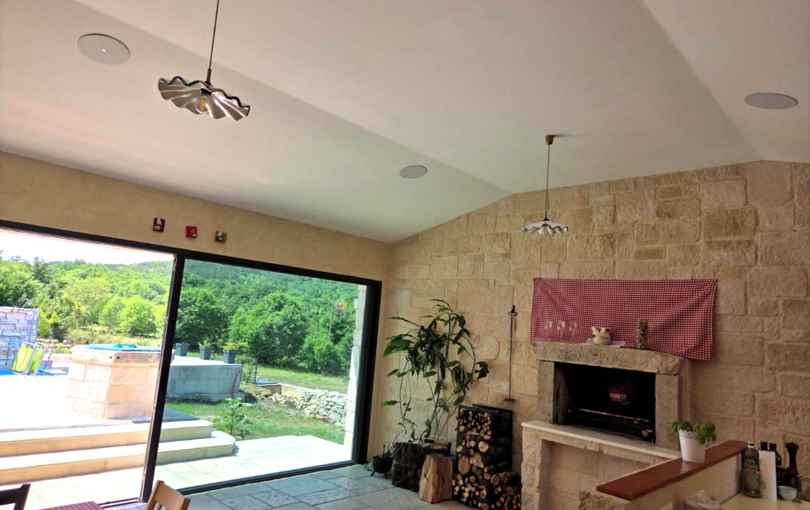 Profesionalni sustav ozvučenja unaprijedio je funkcionalnost i atmosferu kuće za odmor – od intimnih večera u konobi, uživanja u bazenu, do zabava na terasi pod zvjezdanim nebom.