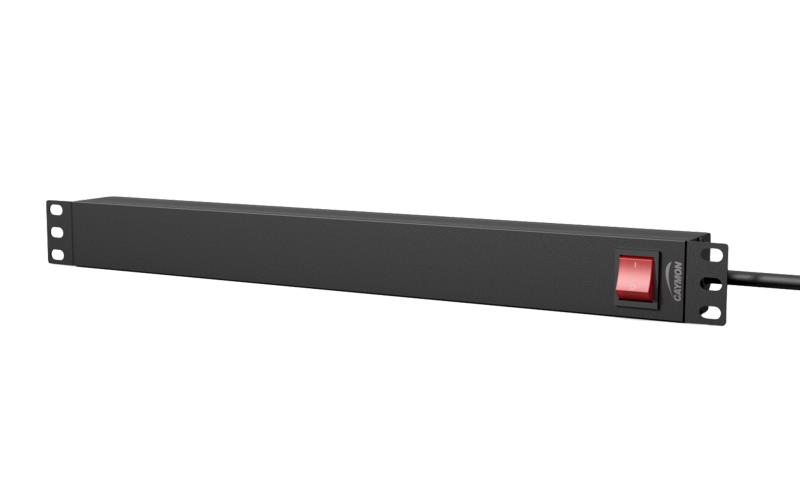 1. 9x njemačka (Tip F - CEE 7/4) utičnica Muški Schuko (CEE 7/7) ulazni priključak Crno aluminijsko kućište 2,5 metara kabela Točka uzemljenja šasije 16A ~ 250 VAC / 4000 W maks Sa osvijetljenim prekidačem Rotirajuće uši za montažu od 19” 3 x 2,5 mm² promjer kabela