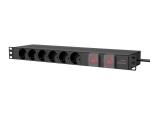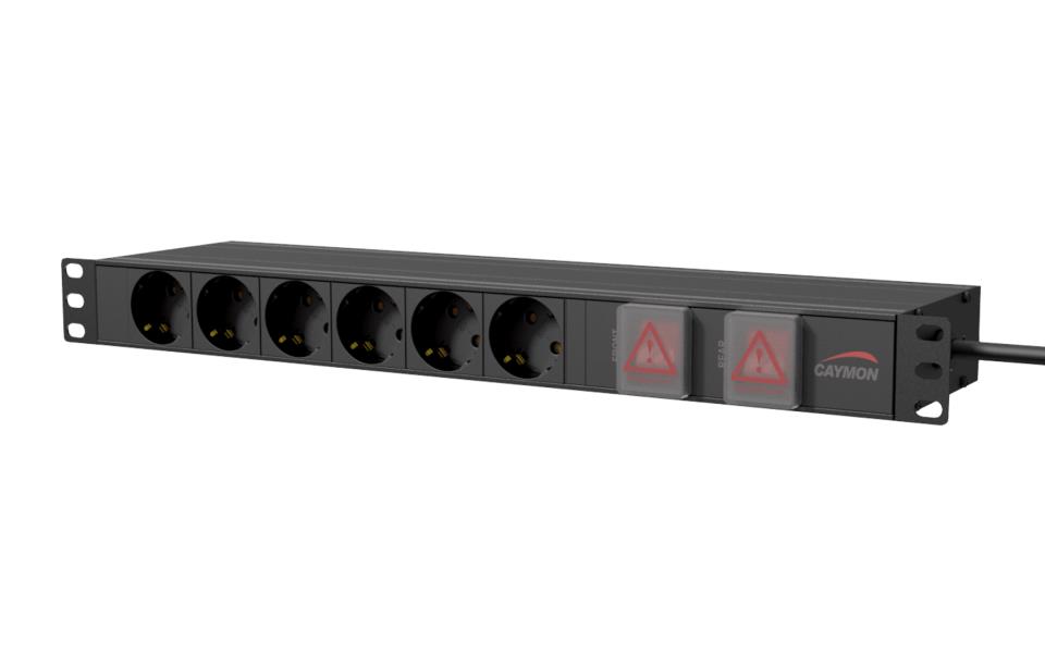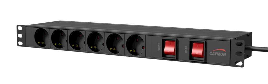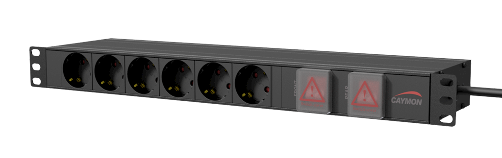 Caymon PSR269GS, panel napajanja za 19" komunikacijski ormar (rack), 15 šuko utičnica i sklopka sa osvjetljenjem sa prednje strane,16A ~ 250 VAC / 4000 W Max, 2.5m kabel, visine 1U