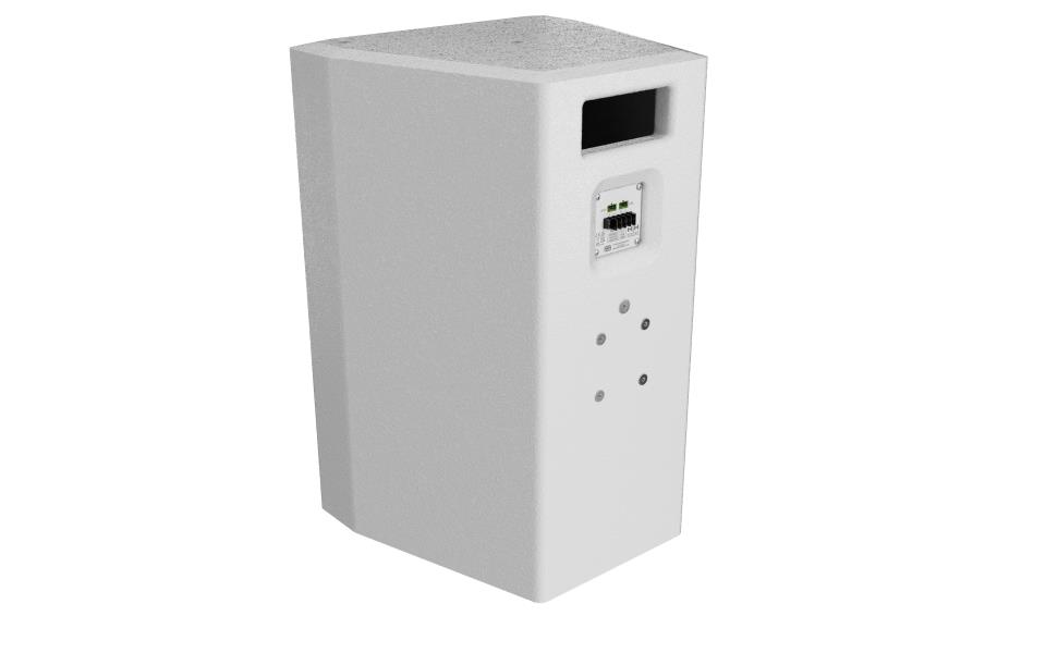 Robusno kućište sastoji se od šperploče debljine 15 mm obložene otpornim završnim premazom od prskanja plus čelične rešetke obložene prahom s podlogom od akustične pjene. Dostupan u crnoj ili bijeloj boji.