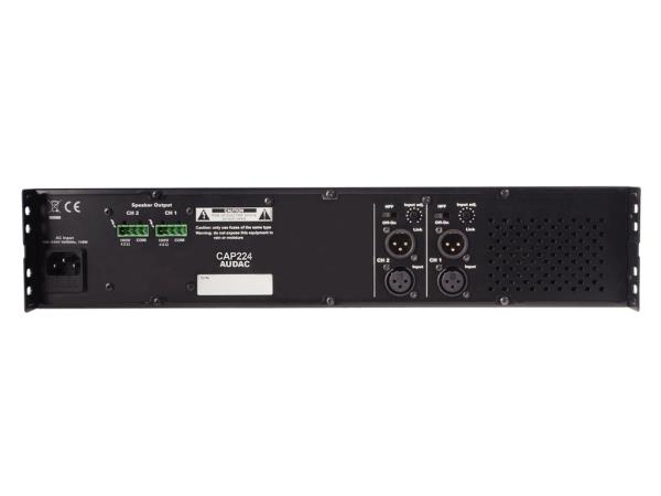 Audac CAP224, profesionalno pojačalo sa 2 kanala, sa snagom od 240 W po kanalu. Fleksibilno rješenje za muti-zonske audio sisteme s dvije neovisne zone. Vrlo "user-friendly", te jednostavan za instalaciju. Visoka učinkovitost, te pouzdanost, zahvaljujući kombinaciji switch napajanja i pojačala D klase. Dolazi sa ugrađenim zaštitnim krugom koji štiti pojačalo od DC kvara, kratkog spoja, preopterećenja i pregrijavanja, a ograničava i signal ukoliko je potrebno. Pojačalo na svojoj stražnjoj strani kućišta ima Gain potenciometar, te high-pass filter (400Hz).