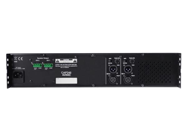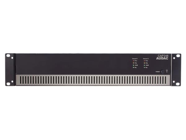 Pojačalo Audac CAP248, profesionalno pojačalo sa 2 odvojena kanala, sa snagom od 480 W po kanalu. Fleksibilno rješenje za muti-zonske audio sisteme s dvije neovisne zone. Vrlo "user-friendly", te jednostavan za instalaciju. Visoka učinkovitost, te pouzdanost, zahvaljujući kombinaciji switch napajanja i pojačala D klase. Dolazi sa ugrađenim zaštitnim krugom koji štiti pojačalo od DC kvara, kratkog spoja, preopterećenja i pregrijavanja, a ograničava i signal ukoliko je potrebno. Pojačalo na svojoj stražnjoj strani kućišta ima Gain potenciometar, te high-pass filter (400Hz).