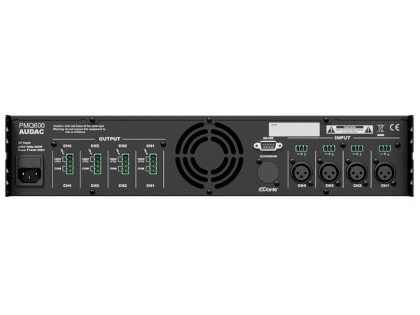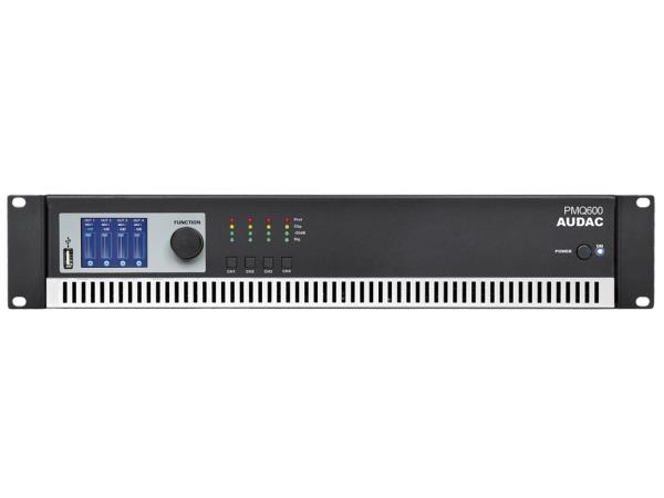 Pojačalo Audac PMQ600, profesionalno 100V pojačalo PMQ serije koja pruža novi standard premium zvuka za aplikacije javnog razglasa. Napredne značajke, te dostupnost različitih izlaznih snaga, za izvanrednu fleksibilnost za brojne aplikacije. Četiri kanalno pojačalo, 600 W po kanalu. Radi u D klasi, za izvrsnu učinkovitost, te izvanrednu kvalitetu zvuka. Optimiziranje akustike pomoću varijabilnog Low / High & Band Pass filtera i 7-Band ekvilajzera, oboje s podesivim frekvencijama i Q faktorom. Također nudi deley podešavanje, te podešavanje dinamičkog basa. Velika fleksibilnost ulaza, te kompatibilnost s izvorima signala.