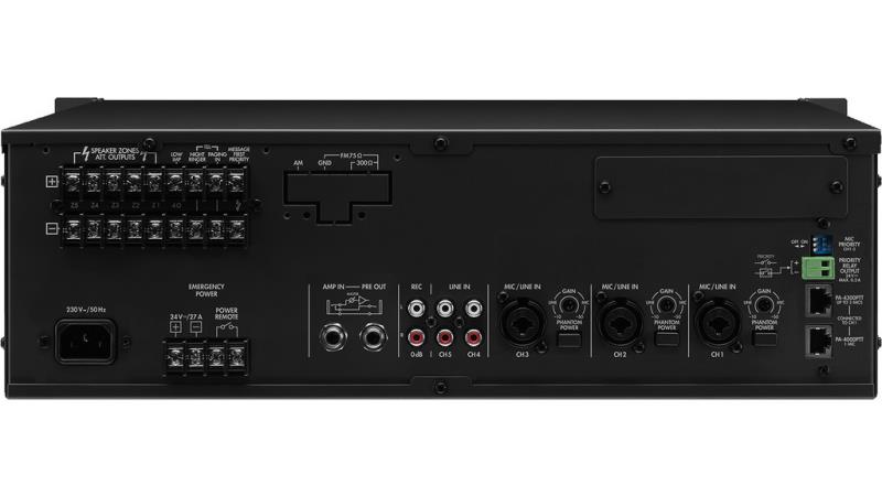 Ulazi 3 x combo 6.3 mm/XLR (mic/line inputs), 2 x RCA L/R (line inputs), 2 x RJ45 (push-to-talk microphone), screw contacts (telepho