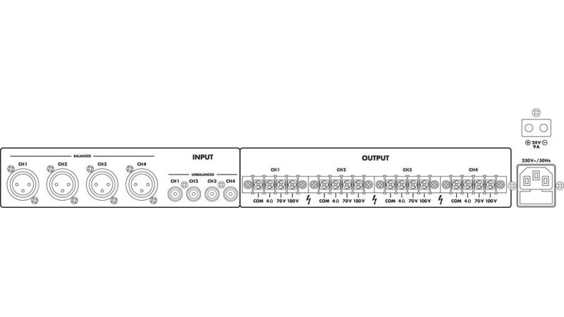 Izlazna impedancija 4 Ω, 70/100 V