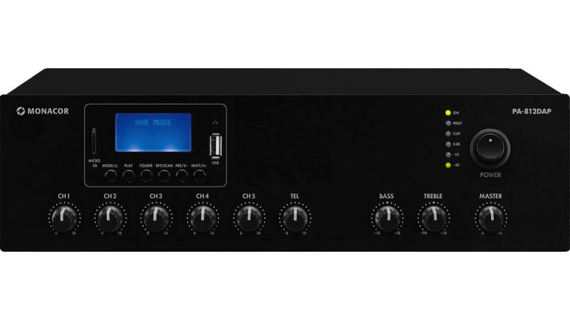 Mono klasa D PA miksersko pojačalo, s integriranim MP3 playerom, FM/DAB+ tunerom i Bluetooth.