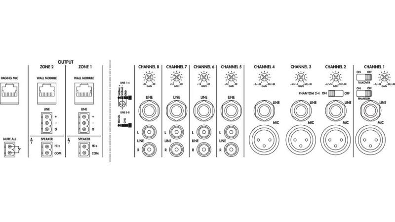 4. 4 podesiva mikrofonska/linijska ulaza s 3-smjernim ekvilajzerom i 24 V fantomskim napajanjem, po potrebi se aktiviraju