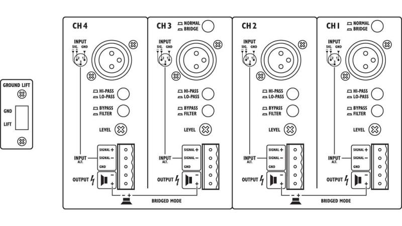 8-kanalno PA pojačalo, s integriranim graničnikom.