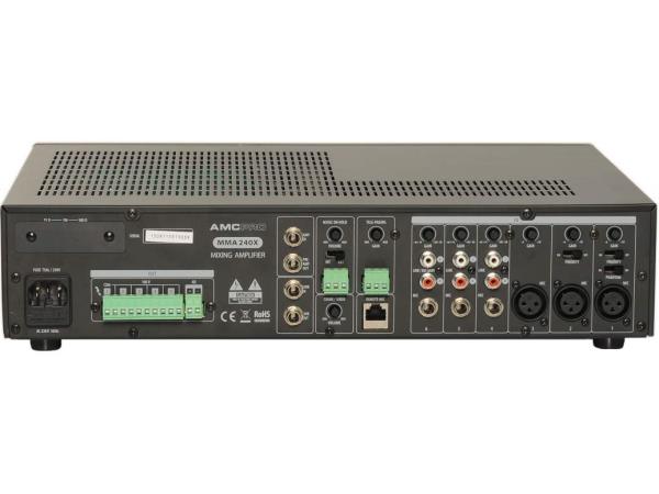 Pet zonsko pojačalo snage 240W sa mogućnosću uključivanja i isključivanja svake zone zasebno (samo na 25V, 70V, 100V). Pojačalo ima ugrađen mixer sa tri mikrofonskih i tri AUX ulaza. Na tri mikrofonska ulaza je moguće odrediti prioritet i koristiti phantom napajanje.Također je moguće koristiti i paging mikrofon. Kao opcija se nudi pet-zonski pozivni mikrofon sa odabirom pozivnih zona. Regulacija glasnoće i gain-a za svaki od ulaza pojedinačno. Ugrađen grafički ekvilajzer. Odabir načina rada 25V, 70V, 100V ili 8 Ohm.