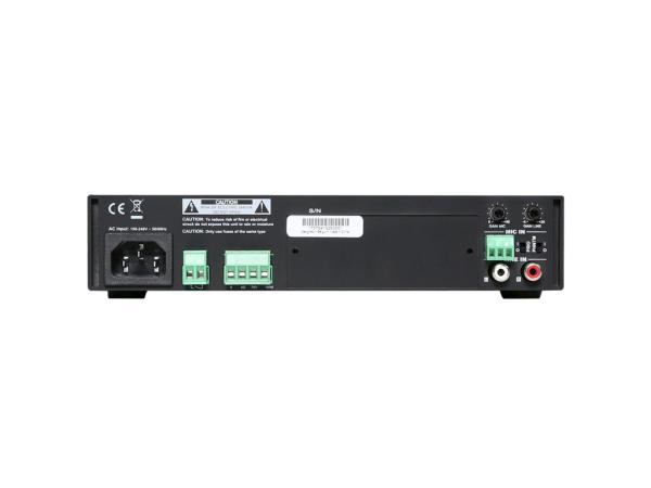 Tipična primjena su sustavi pozadinske glazbe u trgovinama, barovima, restoranima i poslovnim zgradama. Pojačalo je dizajnirano korištenjem tehnologije pojačala klase D i isporučuje izlaznu snagu od 80 W na audio sustave konstantnog napona (100 V i 70 V) ili niske impedancije (4 Ohma). Preklopno napajanje omogućuje kompatibilnost sa širokim rasponom mrežnih napona za globalnu kompatibilnost.