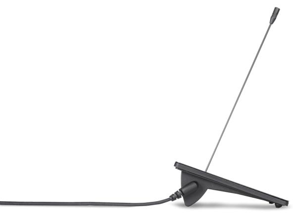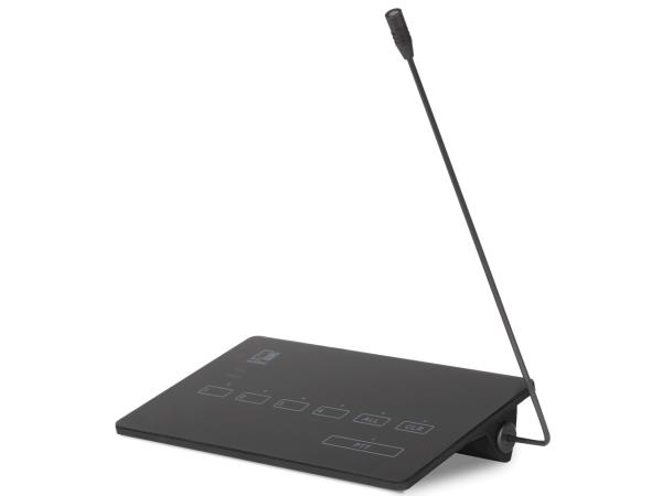 The MPX series are paging microphones specifically designed for use in combination with MTX series audio matrix systems. The MPX48 is the 4-zone system allowing it being used in combination with an MTX48 4-zone audio matrix system.The modern shaped enclosure is finished with a real glass front panel provided with an anti-glare coating. This offers a microphone with elegant outlook which will be appreciated in any office or even design interior environment.The controls are integrated in the glass panel through capacitive touch button principle without any mechanically moving parts, same as the indicator LED’s which are completely blended. This guarantees a real high-end outlook and user experience.An integrated chime tone is audible before each announcement. Announcements are made through the integrated pipe-neck microphone with a cardioid pickup pattern, which can be tilted to the desired angle.Both zone selection and data bus indicators are implemented, giving an overview of the systems current operation mode and data bus occupation. Quick operation is made possible using the ‘select’ & ‘clear all’ buttons, while the ‘push-to-talk’ (PTT) button must be pressed during announcements.Connection to the matrix system is done through a fixed connection cable with a length if 2 meter. This distance can be extended to a maximum length of 300m using standard CAT5E (or better) twisted pair cabling.Cascading multiple paging stations is possible using the priority-based (user-configurable) databus, when using additional junction boxes ARJ03P or CP45ARJ.
