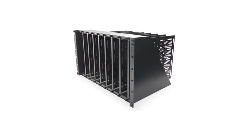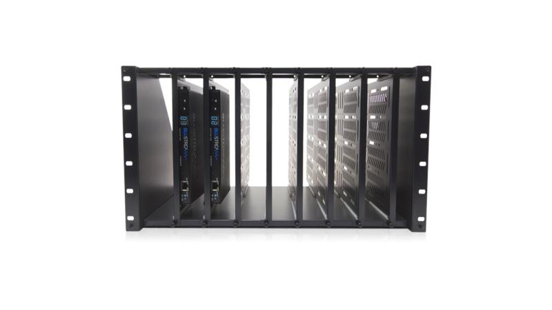 2. 8 x uklonjive okomite police s noževima s ventilacijskim / montažnim mjestima *, idealne za ugradnju u nosače bilo kojeg Blustream TX ili RX proizvoda ili opće AV opreme